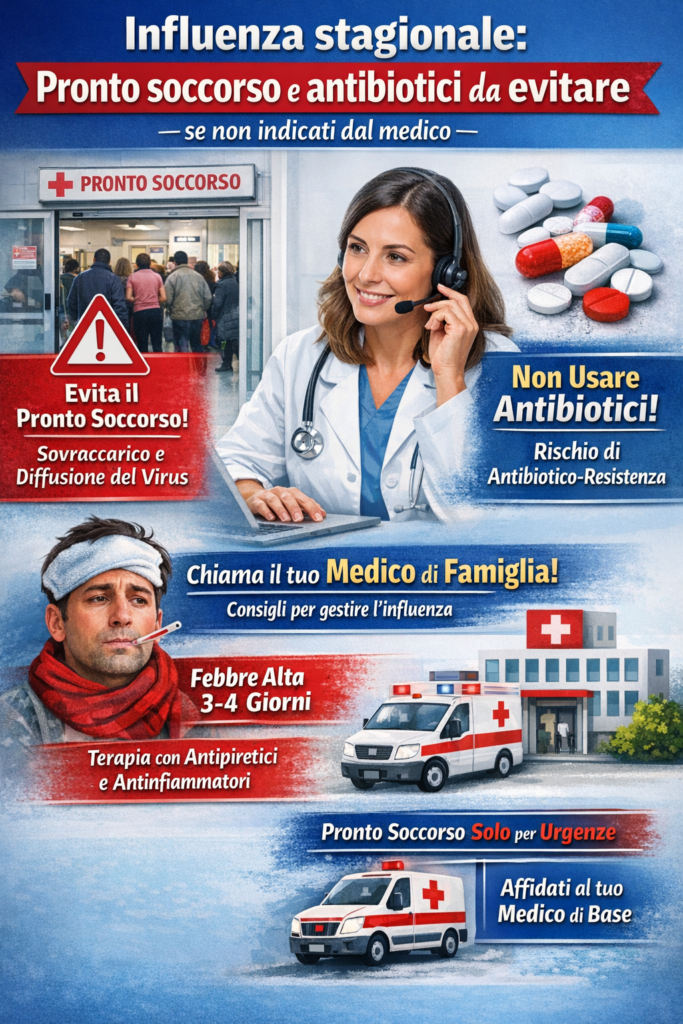 Con l’ingresso nel vivo della stagione influenzale, gli esperti lanciano un appello chiaro: niente pronto soccorso e niente antibiotici per l’influenza, a meno che non siano espressamente consigliati dal medico. Anche nei casi legati alla cosiddetta variante K, due comportamenti restano da evitare perché inutili e potenzialmente dannosi.